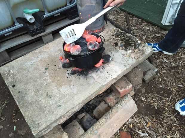 Estábamos un poco por debajo de los carbones por lo que no mantienen caliente por mucho tiempo suficiente, pero hemos agregado más combustible y persistió, y salió bien al final!