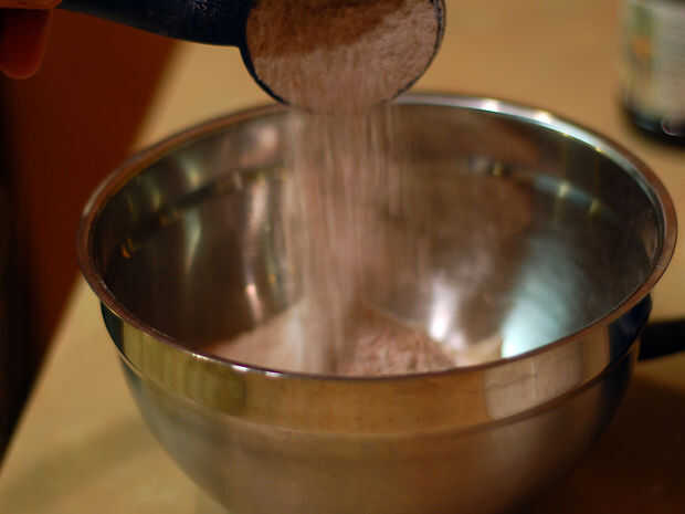 Mezclar todos los ingredientes secos en un recipiente lo suficientemente grande para caber todos los ingredientes, secos y líquidos.