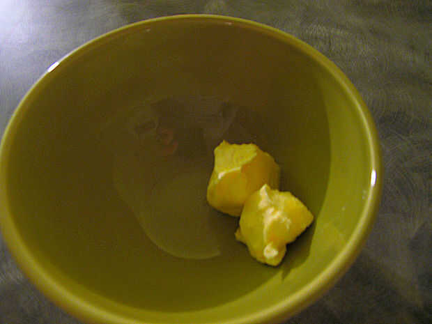 Tomar el extra 2 cucharadas (1/4 barra) de mantequilla y ponerla en un recipiente de microondas seguro. La mantequilla en el microondas durante 12-15 segundos.