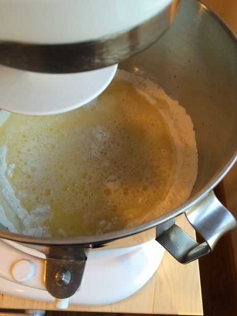 • Añadir a la mezcla de harina y mezclar a velocidad 2 (a baja velocidad en una batidora de mano) por un minuto