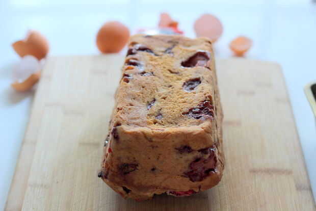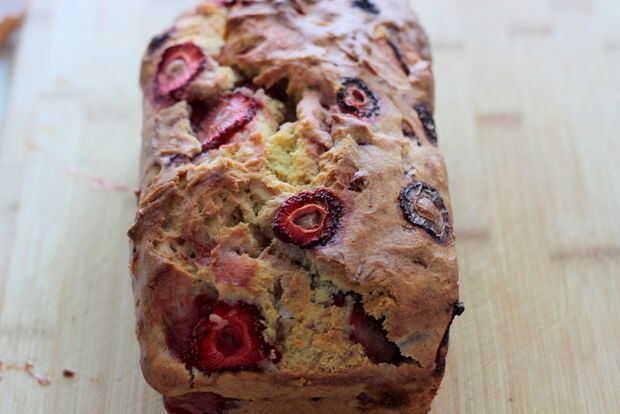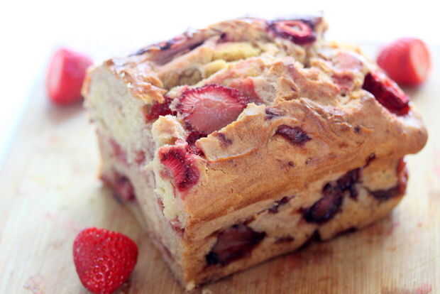 Sobre la receta: Este pan de torta es muy húmeda; podría reducir la leche o no usar leche en absoluto. El pan está lleno de fresas (hay fresas en cada mordida), si no quieres tantas fresas en tu pan, utilizar una taza menos.