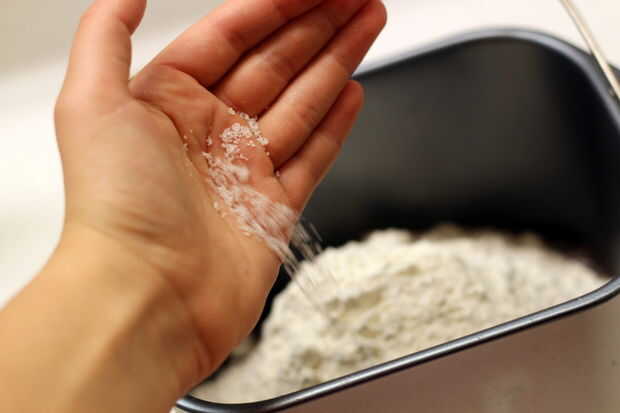 Para el panT 65 harina 1 kg14 g de sal por kg de harina600 ml de agua tibia2 paquetes de levadura fresca para panLa imposibilidad de tener levadura casera (protector de una pequeña masa de amasado anterior, para fermentar la mezcla siguiente) puede s