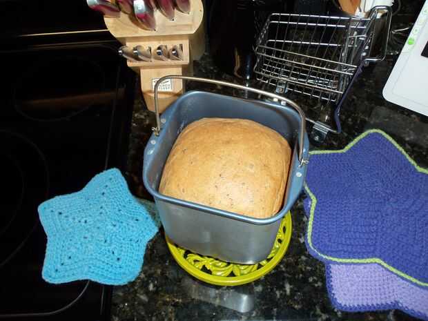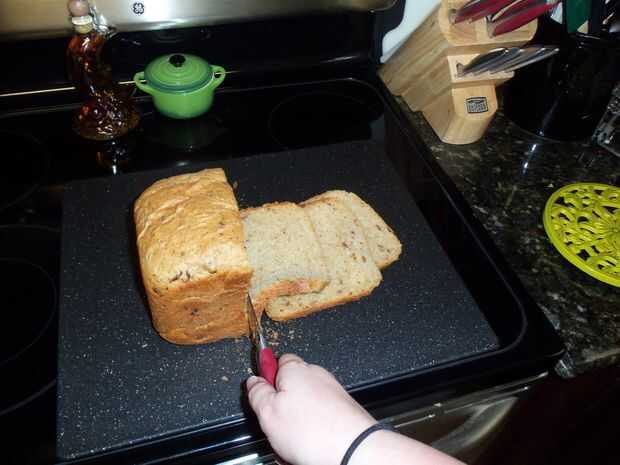 Elegir un cuchillo de pan largo serrado, o utilizar un cuchillo eléctrico (que son grandes para rebanar pan!) y rebanada de pan, puede untar mantequilla en el segmento, o tostarlo, hacer un sándwich, el pan no generalmente hace hasta el día siguiente a mi casa, pero estoy seguro de que es genial para el desayuno, por desgracia, no sé.