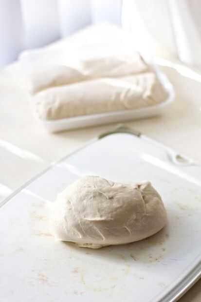 Enharinar ligeramente una superficie plana grande. Saque 1 libra de la masa y colóquela sobre la superficie de trabajo.
