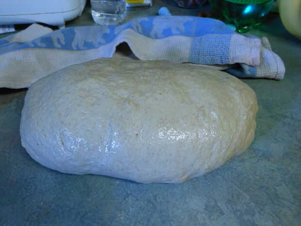 Rociar la encimera con el spray antiadherente y poner la masa en un montículo en el contador.  Cubrir la masa con el paño y deje subir al doble (½ a 1 hora).