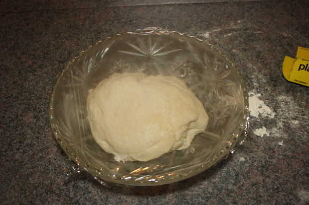 Lugar en un tazón engrasado, vuelta para engrasar la superficie.  Cubrir con papel plástico y poner en un lugar cálido a elevarse, hasta que se duplique, aproximadamente una hora.