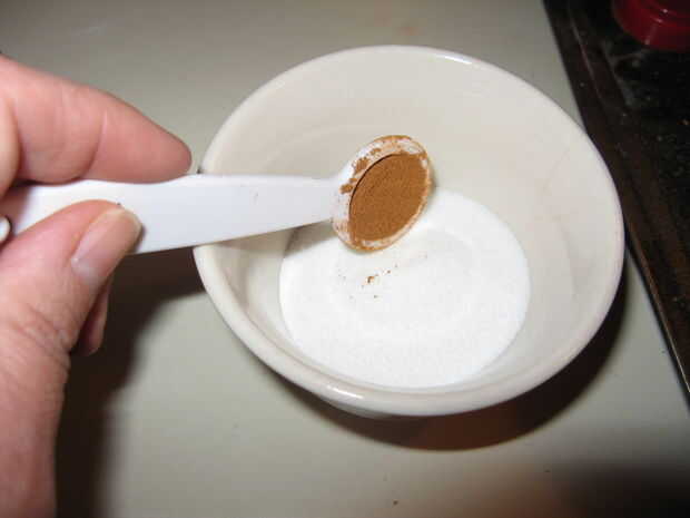 Combinar azúcar restante (1/4 de taza) y canela en un molde o recipiente pequeño.  Espolvoree uniformemente sobre la masa.  Cocer en horno de 350 grados Fahrenheit durante 35-40 minutos.