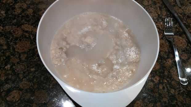 Al igual que el título dice, añadir el agua. Hacer una dell en la harina y verter. Agitar hasta que los restos de los gránulos han desaparecido, sustituido por una bola sólida. Deben tener forma y abeja no demasiado pegajosa. Si necesita más harina, añadir algunos más.