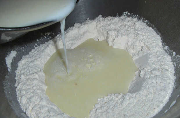 Combine 2 tazas de harina y la levadura en un tazón grande. Calentar la leche, mantequilla, azúcar, sal en una cacerola hasta que la mantequilla se derrita (aproximadamente 115° F). Añadir la mezcla de leche a la harina y la levadura. Mezclar bien, añadir el huevo y batir bien. Añadir el resto de la harina. Amasar, si desean o no amasar, solo Asegúrese que todo esté bien mezclado. Transferir a un tazón engrasado. Cubrir y poner en un lugar cálido a subir hasta que doble su tamaño (1 1/2 h)