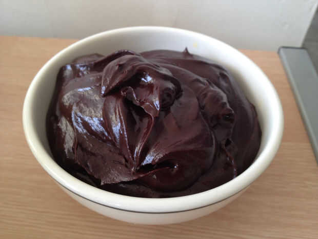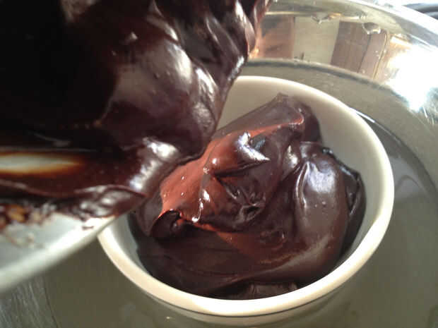 Vuelta de calor Coloque la bandeja en baño de agua helada y seguir revolviendo hasta que espese (5 minutos) - consistencia de mousse o que prefiere