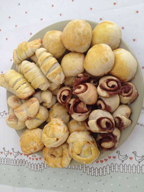 Para la canela azucarada, es como rollos de canela, pincel con mantequilla derretida, espolvorear con una mezcla de azúcar y canela en polvo