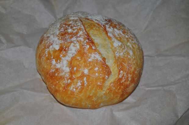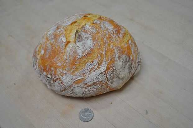 Sin embargo, he encontrado que una olla con tapa solo es la mejor manera de hornear pan! El pan terminado es un rústico, redonda de pan artesanal.