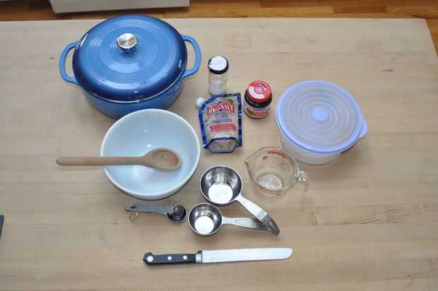 También necesitarás un tazón, seco y mojado de tazas de medir, cucharas y un paño limpio o un paño de medición.