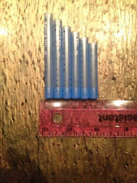 Ever quería hacer una flauta de pan pen bien ahora puede.Paso 1: Piezas que se necesita Corrales (recomiendo usando bolígrafos Bic)CintaCuchilloPaso 2: Cortar las tiras de los corralesRecortar las plumas a longitudes diferentes (ser creativo).Paso 3:
