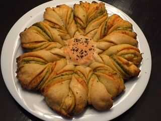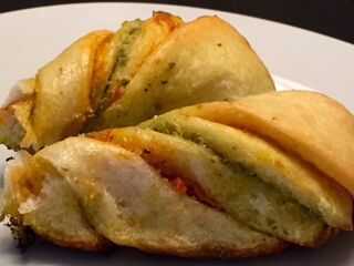 Sin embargo tuve salados en mente por lo que podría ser servido en cualquier momento y quería buscar un colorido. Así que sustituyó masa brioche con una masa de pan y Nutella con 2 Pestos de diferentes colores.