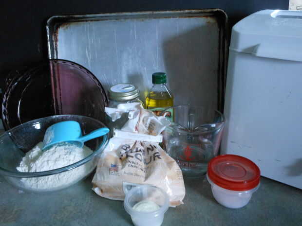 Todos mis amigos me piden la receta y la técnica de mi masa de pizza, así que aquí está el instructivo! Esto es más fácil con una máquina de pan, pero sin duda puede amasar la masa con la mano.Paso 1: Conseguir los ingredientes!Para un bulto de 2 lib