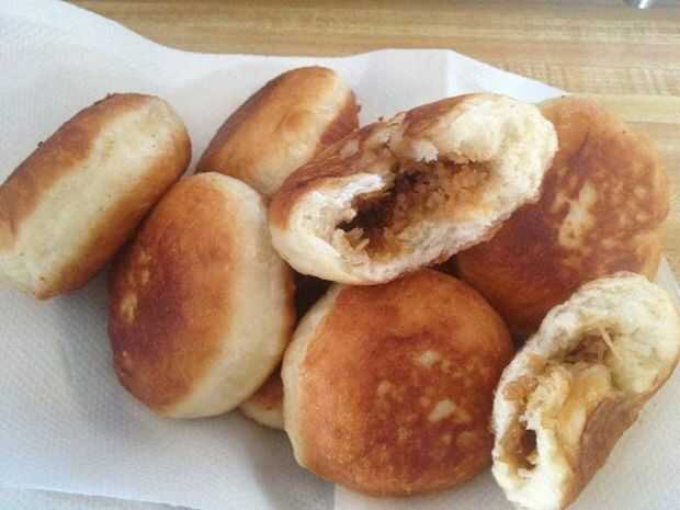 Aplane cada bola y relleno con coco (u otros rellenos que te gusta), de la costura a sellar, dejar reposar otros 10 minutos
