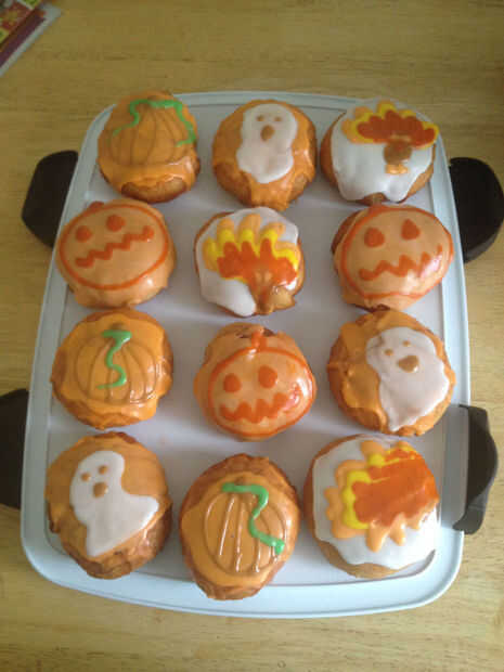 Inicio decoración de pan frito como fantasma, calabaza, jack o lantern o Turquía (de acción de gracias)