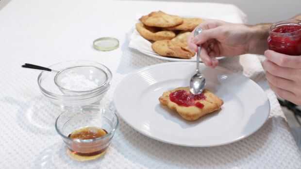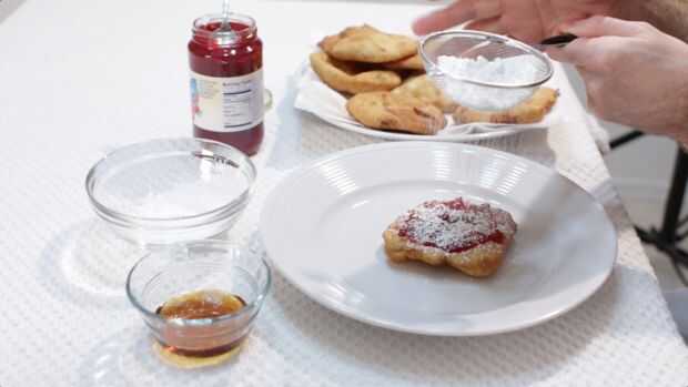 Ahora agregue sus ingredientes favoritos. Me gusta conservas uso fresa y azúcar en polvo. Jarabe de arce funciona realmente bien, así como mantequilla de maní. Si usted quiere convertir en un plato salado, añadir tus condimentos favoritos taco en la parte superior, carne, queso, lechuga, tomate, etc.. A viento por ser un taco de Navajo o indio. (hay varios nombres para él).