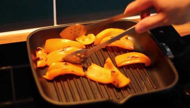Al mismo tiempo, poner los tomates en el Comal, se cocinan rápido debido a los azúcares dulces y la carne suave. Estarán listos al mismo tiempo como los espárragos.