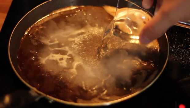 Poner los espárragos en el vino y poner una tapa en la parte superior, los espárragos se llevará unos 2 minutos a ser tierno y vapor en el vino y el pez mantequilla hará brillante y delicioso.