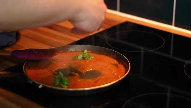 Para éste el secreto es pesto (incluso podría hacer su propio pesto), aquí usamos un pesto de tomate picante. Añadir el pesto al vino en la cacerola y mezclar. Puede que necesite añadir un chorrito de agua para aflojar la salsa. Agregue el perejil de hoja plana en el extremo y agregue.