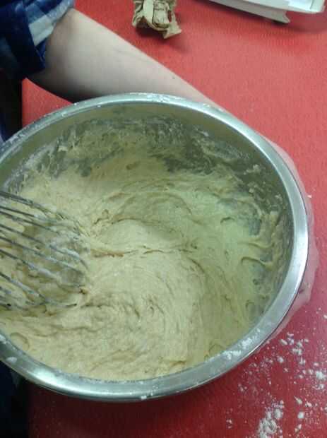 Aplicar la levadura en agua tibia, hasta que se disuelva, agregue el azúcar, revolver y dejar sir durante 2-3 minutos. Combinar con leche, mantequilla derretida, huevos, sal y 3 tazas de harina. Batir a velocidad alta durante 3 minutos.