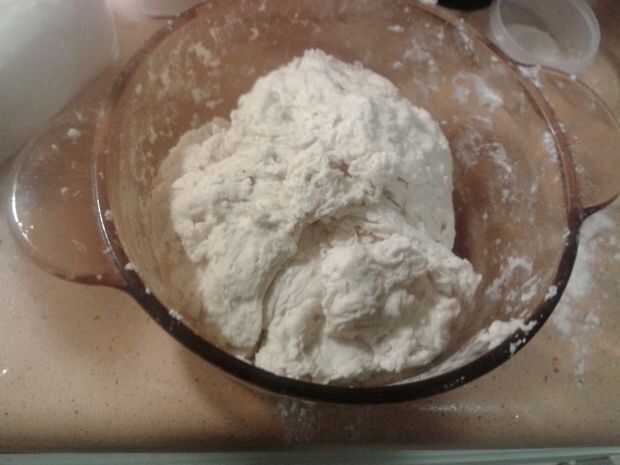 Entonces llegó a mis manos húmedas y dobla la masa sobre sí misma dejando que la humedad agregada agarra el último de la harina y combinar con la masa.