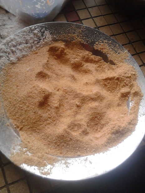 -Poner un puñado de harina y espolvoree sobre el huevo de nuevo. mantener en la bandeja