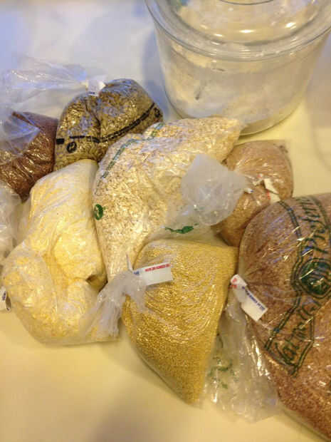 Cuando están poniendo los ingredientes secos en el recipiente, tienes harina y la sal en la receta básica. También es un buen momento para hacer adiciones. Generalmente contener aproximadamente 2 tazas de harina para más adelante y añadir en la misma cantidad de los siguientes: