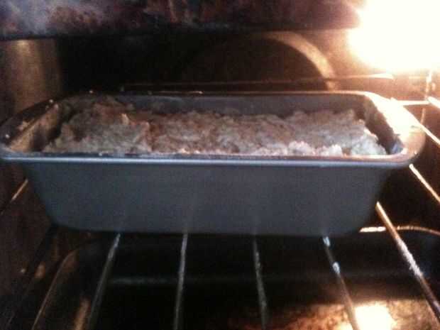 Vierta la mezcla chapucera en la bandeja de pan y cocer en el horno precalentado (180' C) durante 30-35 minutos.