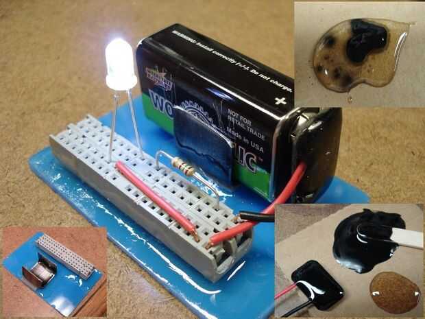 La Junta funciona ahora pero su feo. Yo uso epoxy gluded mi nueva junta a una pequeña pieza de plástico. Esto hace que el tablero mejor y protege la parte posterior de pantalones cortos. Usé un pequeño trozo de metal (correa de envío cosas grandes ladrillos y gratis) para formar un receptáculo de la pila de 9V y había pegado a la Junta, así. Soldamos un par de cables en la parte trasera de una vieja tapa de batería 9V para formar un clip de batería de 9V. He cubierto de epoxy para prevenir cortocircuitos así. Para puntos de estilo tinte mi epoxy para pinzas con una gota de pintura negra de acrílico. No demasiado o se consigue jacked up y no cura correctamente.