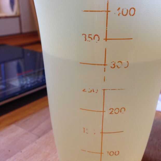 Medir 300ml de agua (300ml de agua es también 300 gramos!)