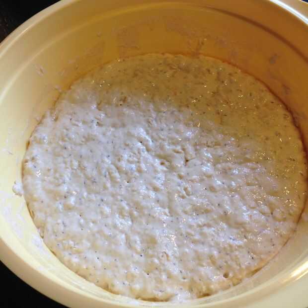 Ajustar la masa a un lado durante la noche (6-10 horas) con un paño o con una tapa colocada libremente sobre él.