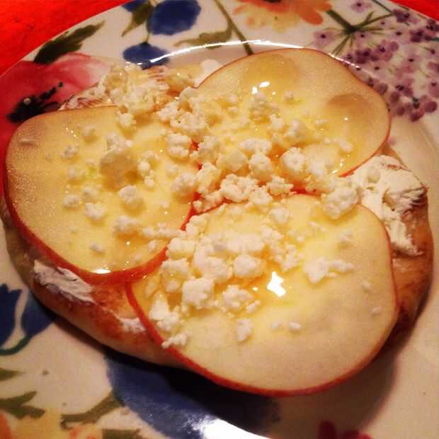Pan plano aperitivo w/asado tomates y queso de cabra (también conocido como sabroso aperitivo)