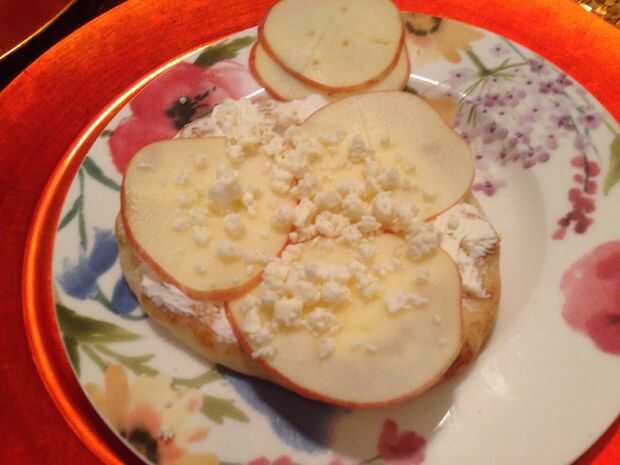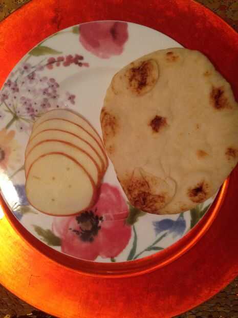 1. Comience con su mini naan. Cubrir con crema de queso.