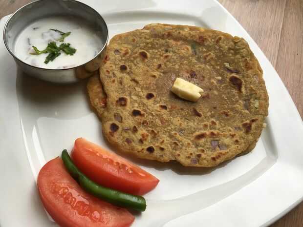 5) calentar la plancha o la tava a fuego medio. Coloque el paratha en el Comal caliente y cocine por ambos lados. Añadir mantequilla o aceite para textura quebradiza.