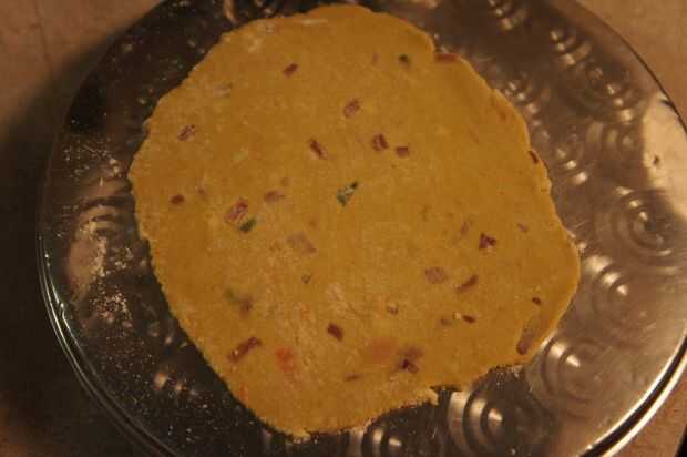4) despliegue cada bola de masa en un medio de tamaño paratha.