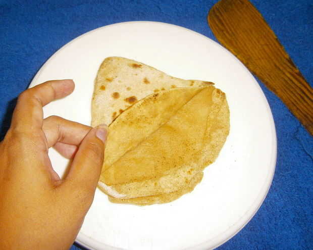 Circulares también pueden prepararse en capas. Chapati puede ser una capa de una capa, dos capas, tres capas / triangular en forma cuadrada y de cuatro capas. Mostrará cómo hacer triángulo los demasiado.