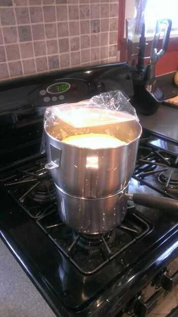 Recoger la masa terminada en una bola. Cubrir el fondo y los lados de la taza con aceite y la masa alrededor del rodillo para está recubierto completamente con aceite. Cubra el tazón con envoltura de plástico y retrasó en una jarra de agua de grifo caliente fresco.