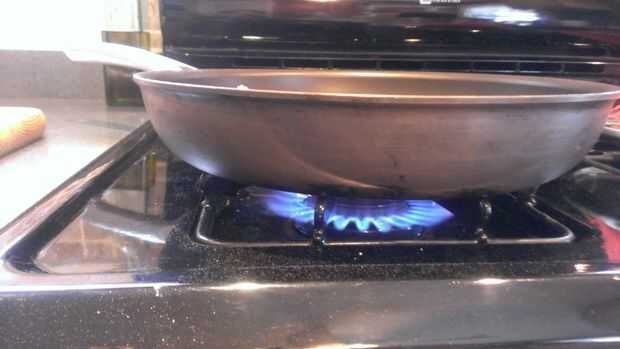- Encender la llama de alta bajo su sartén antiadherente y deje que se caliente.