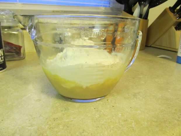 Mida dos tazas de harina y añadir la al bol para mezclar. Si tienes un mezclador con un gancho para masa, no dude de dejar hacer la mayor parte de la obra en este momento. Si no, coge una espátula de goma o las manos de harina y empezar a mezclar la masa. En lugar de utilizar un movimiento de mezcla como cuando se trabaja con una mezcla de pastel, doble la harina en el agua. raspar a lo largo de los lados y el fondo de la olla e incorpore en la harina. Como la pasta empiece a unirse será casi imposible remover de todas formas. Pensar en los bancos un panqueque cuando raspa a lo largo de la parte inferior y bancos en la parte superior.