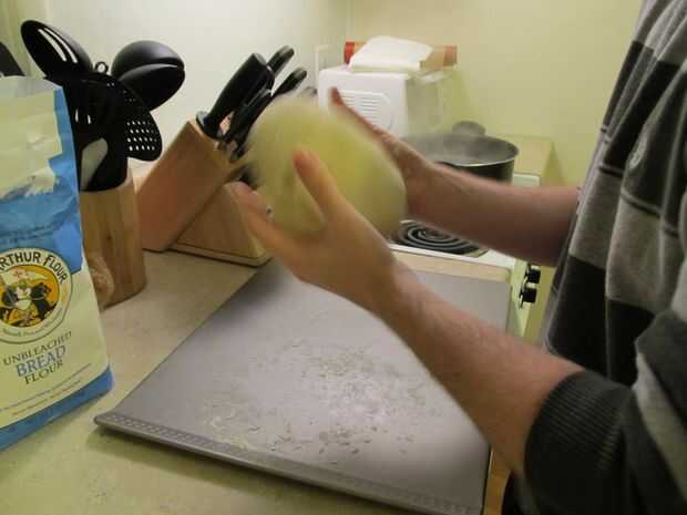 Después de la masa en el recipiente con mantequilla, dale la vuelta una vez para que todos los lados están cubiertos.