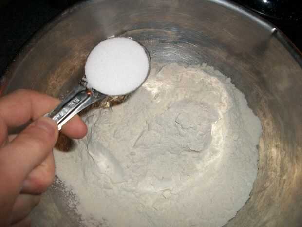 Combinar todos los de la harina restante en la receta con la sal. NO OLVIDES LA SAL. El pan tiene tres ingredientes, agua, harina y sal. Usted es probable llegar muy lejos sin el harina o el agua, pero la sal es bastante fácil de olvidar.