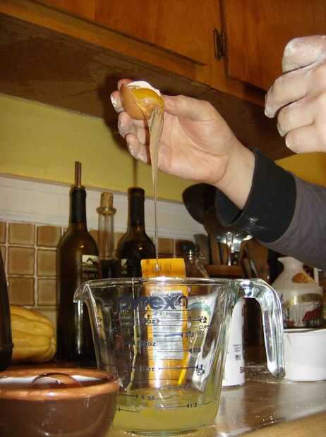 Tenga cuidado de no pinchar la yema de huevo, o no se queda en el tacto y de la taza de claras de huevo.