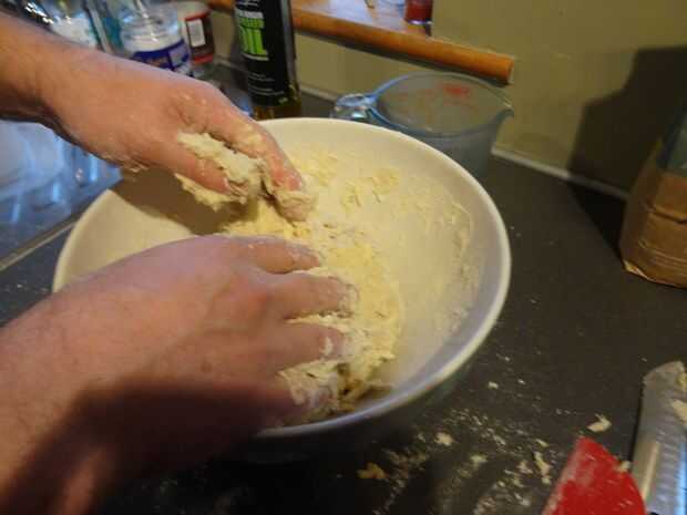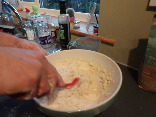 Mezclar la masa con una cuchara o espátula hasta que la harina se ha ido - luego wade y squidge se acerca.