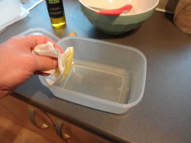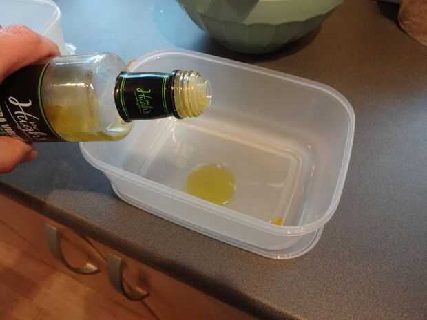 Poner aceite vegetal/oliva/colza en un recipiente de plástico (3 litros) y frotis sobre - no se olvide de la tapa.