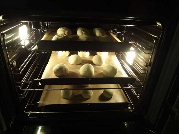 Apagar el horno hasta 210 c y hornear por 10-15 minutos (menos para pequeños rollos, más para más grande).