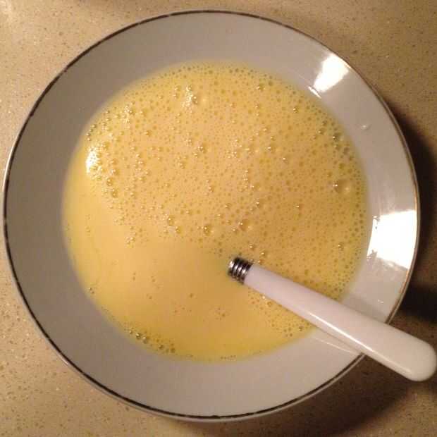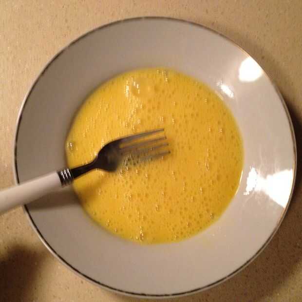 2. Schneebesen die Eier mit einem Schneebesen oder Gabel.