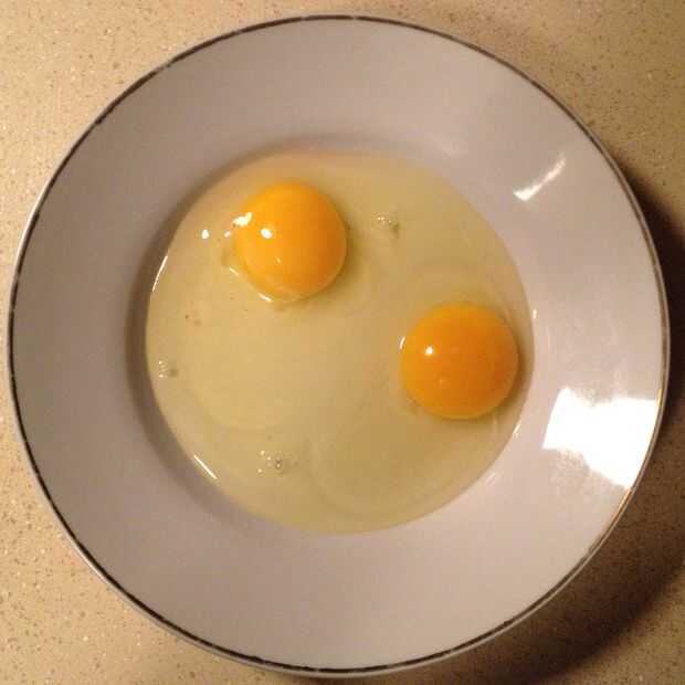 1. Nehmen Sie die tiefen Teller und riss die beiden Eier.